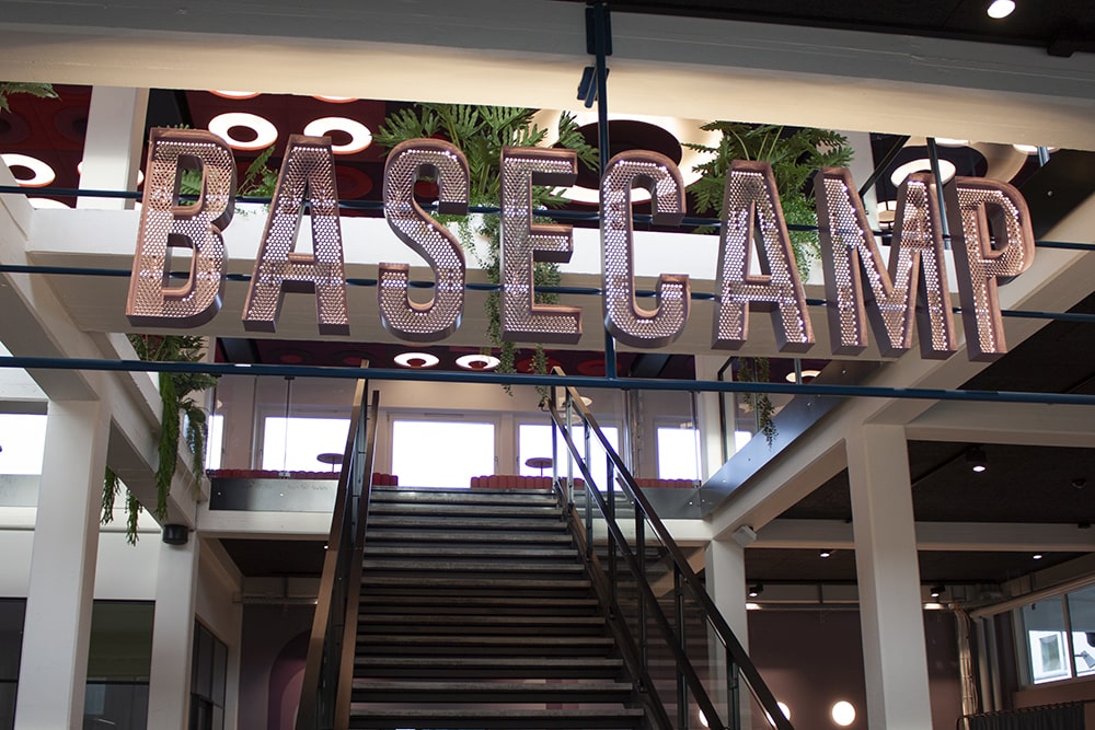 Det nye BaseCamp-kompleks er det tredje i København og er indrettet i de bygninger, der før udgjorde Det Informationsvidenskabelige Akademi, også kendt som biblioteksskolen. Ejendommen er bygget i 1967 og består af to hovedbygninger, kombineret med en lavere mellembygning. Disponeringen af bygningerne bygger på et forslag, udarbejdet af Lars Gitz Architects og videreudviklet i henhold til BaseCamps indretningsstrategi. De 350 værelser og fællesarealerne er indrettet og møbleret af det tyske Studio Aisslinger i en særdeles livlig og farverig stil, der vækker minder om Verner Panton.