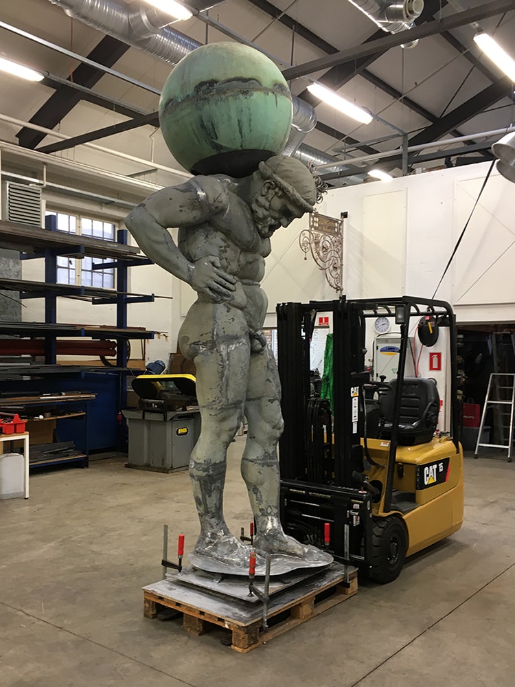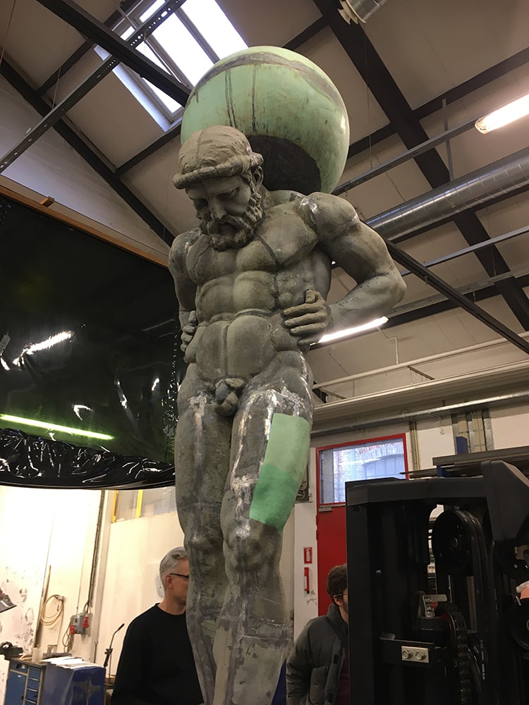 På toppen af Maskincentralen i Carlsberg Byen står der en 3,5 meter høj og 300 kg tung statue af den græske gud Atlas. Statuen er i øjeblikket nedtaget for at blive restaureret og skal snart tilbage på sin plads. Vi har fået opgaven med at beregne hvad det kræver igen at fastgøre den sikkert til taget.